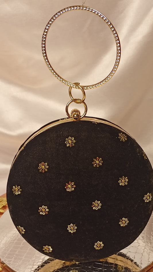 BLACK VELVET ROUND CLUTCH