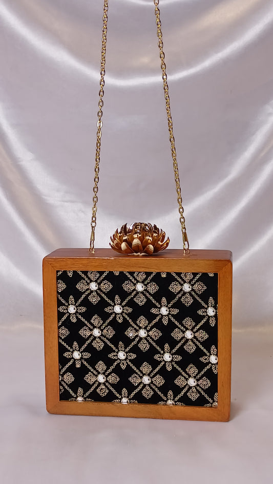 BLACK SQUARE WOODEN CLUTCH