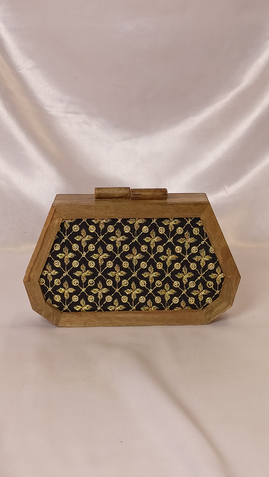 BLACK PENTAGON WOODEN CLUTCH