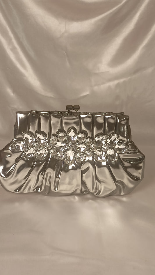 Designer Silver stone clutch