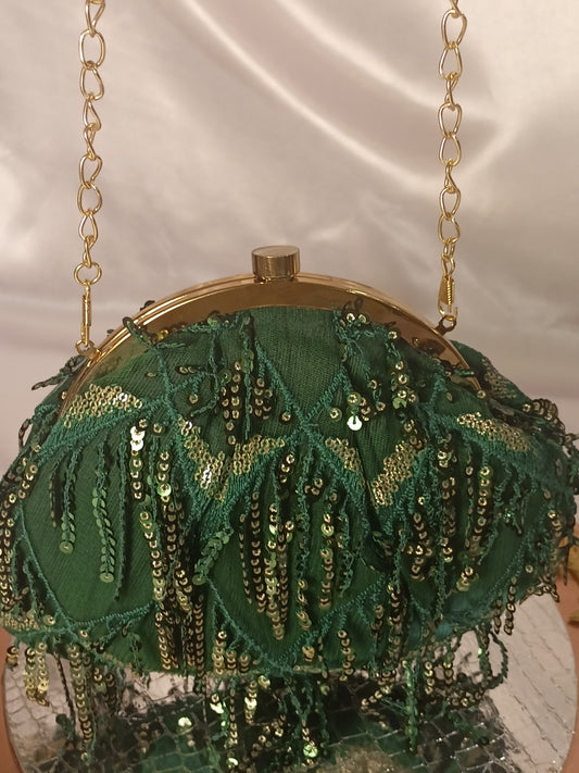 DARK GREEN SEQUENCE BATUA CLUTCH